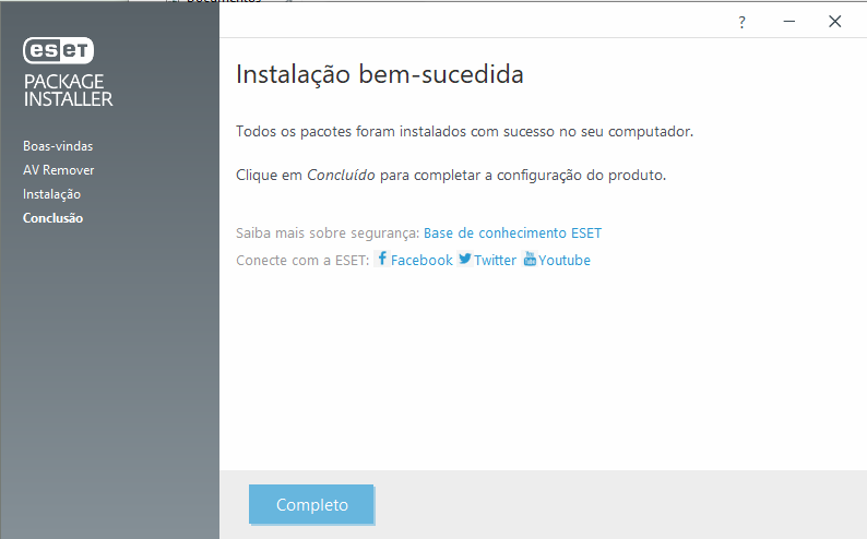 Antes de realizar a instalação do ESET Endpoint Antivirus, certifique-se de que o software antivírus anterior - Kaspersky Enpoint Security, foi removido adequadamente do computador. Para isso, execute a ferramenta de remoção avançada através do link a seguir: Remoção do Kaspersky.