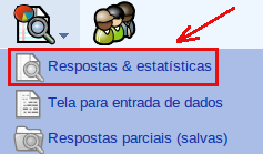 Depois de o questionário ter sido ativado, a partir de sua barra de Administração, e depois de clicar no botão Visualizar as respostas do questionário, chega-se à tela com o ícone em forma de gráfico, para gerar Estatísticas.