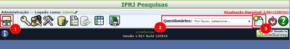 3. Botão “Criar, importar ou copiar um questionário”: permite criar um questionário. Vide seção Criando um questionário.
