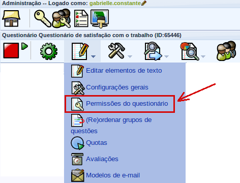 • Selecione o questionário à qual serão atribuídos os direitos