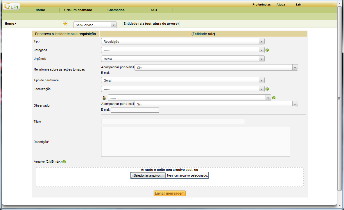 Abrindo chamado