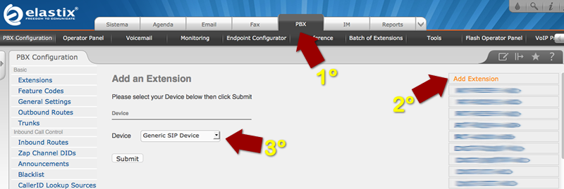 Clique na sessão PBX no menu superior