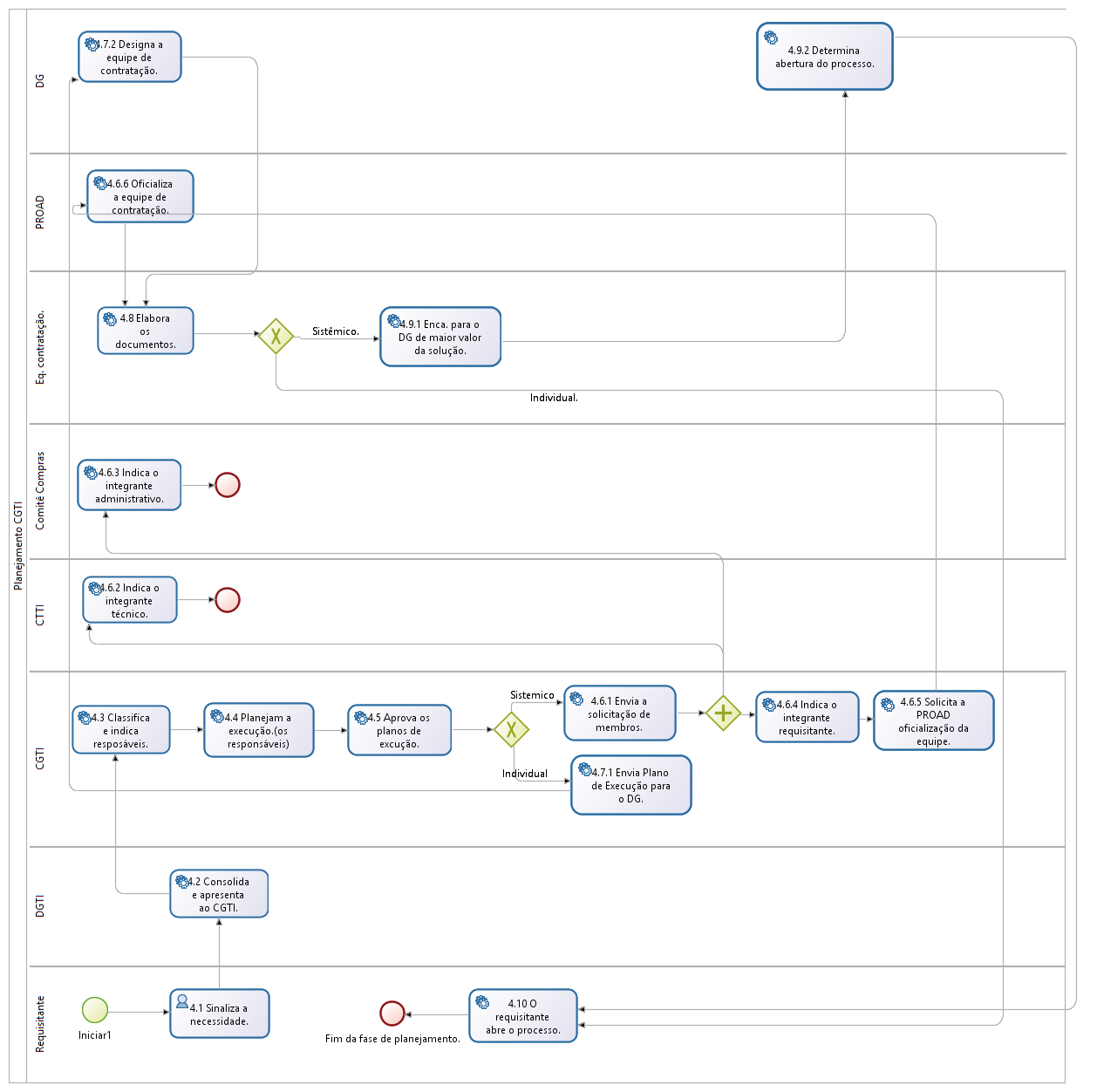 | 4.5 | Informa ao CGTI a equipe de contratação. |