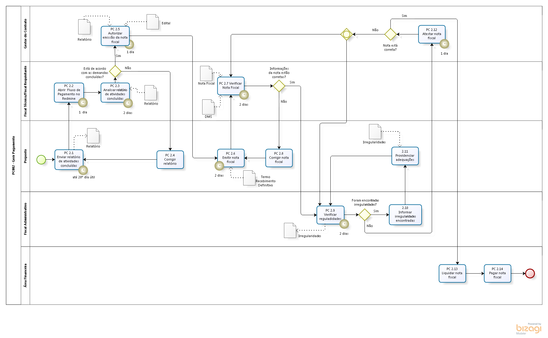 Descrição: O processo realiza a gestão dos pagamentos do Projeto de Contratação, baseado na IN 04. Esse processo é realizado após o processo Gerir O.S., efetuando o pagamento dos serviços já realizados pelo fornecedor. O atendimento do processo Gerir Pagamento também é realizado pelo Redmine. clique aqui.
